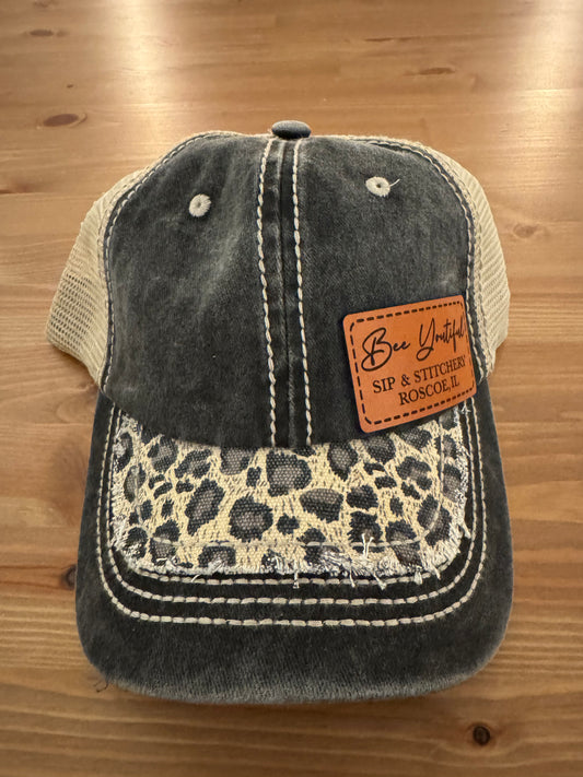 Bee Youtiful Sip and Stitchery Hat - Animal Print Bill with Dark Gray and Tan Back