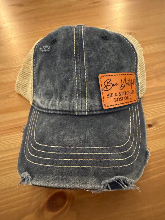 Bee Youtiful Sip and Stitchery Hat - Navy Blue Hat with Tan Back