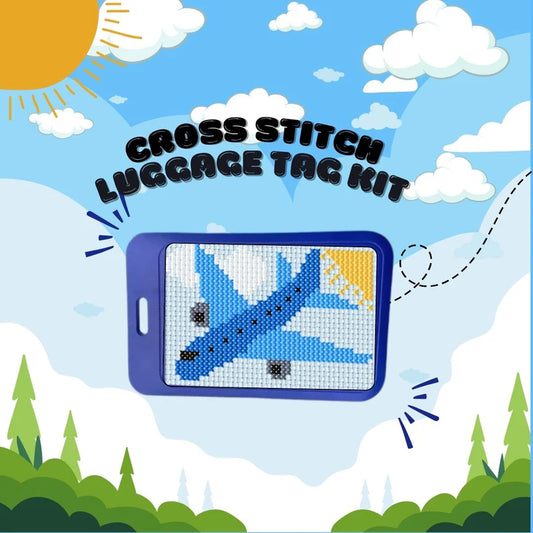 Blue Airplane Cross Stitch Luggage Tag Kit - Jumpseat Therapy