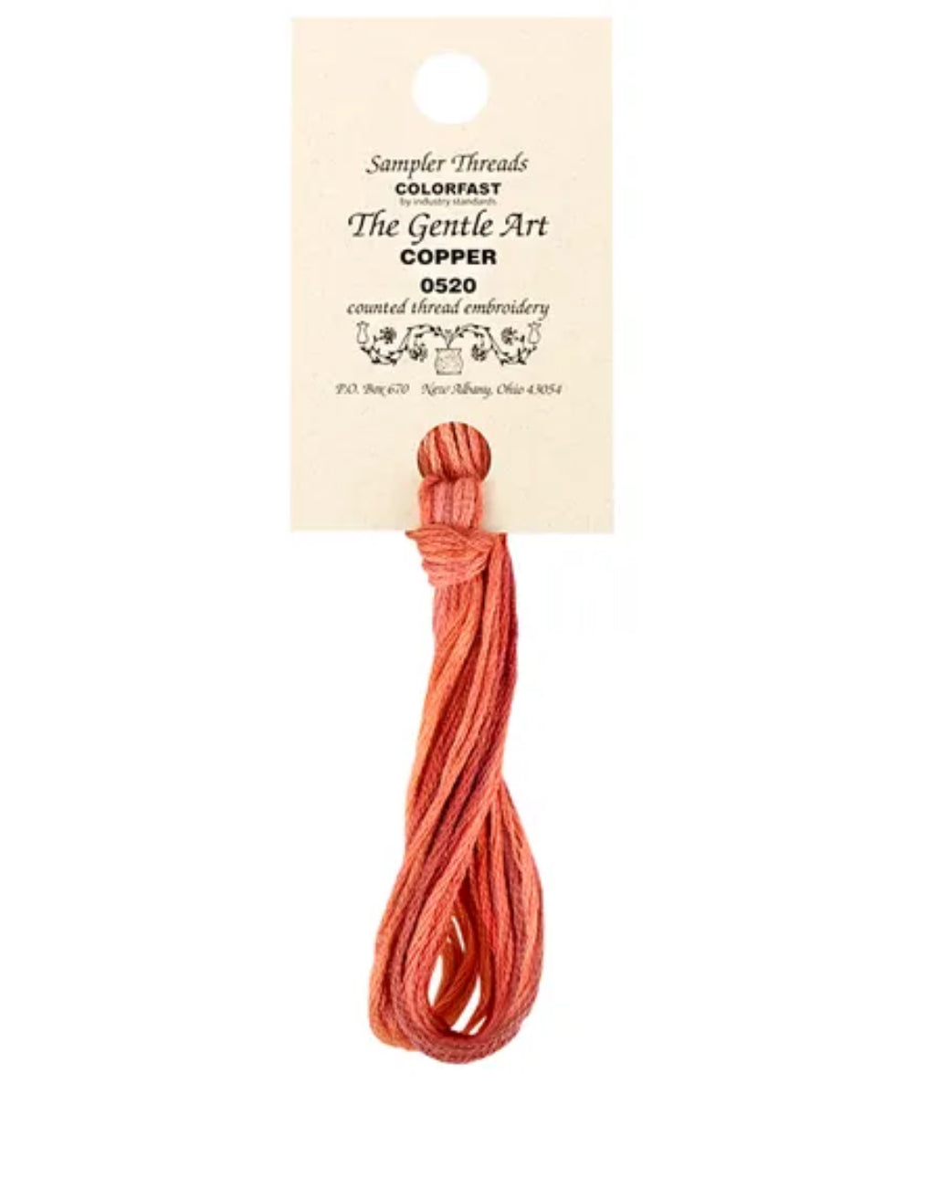 Gentle Art developed their threads to give an aged appearance to new pieces. The color threads are muted; the color variations per strand are subtle.
