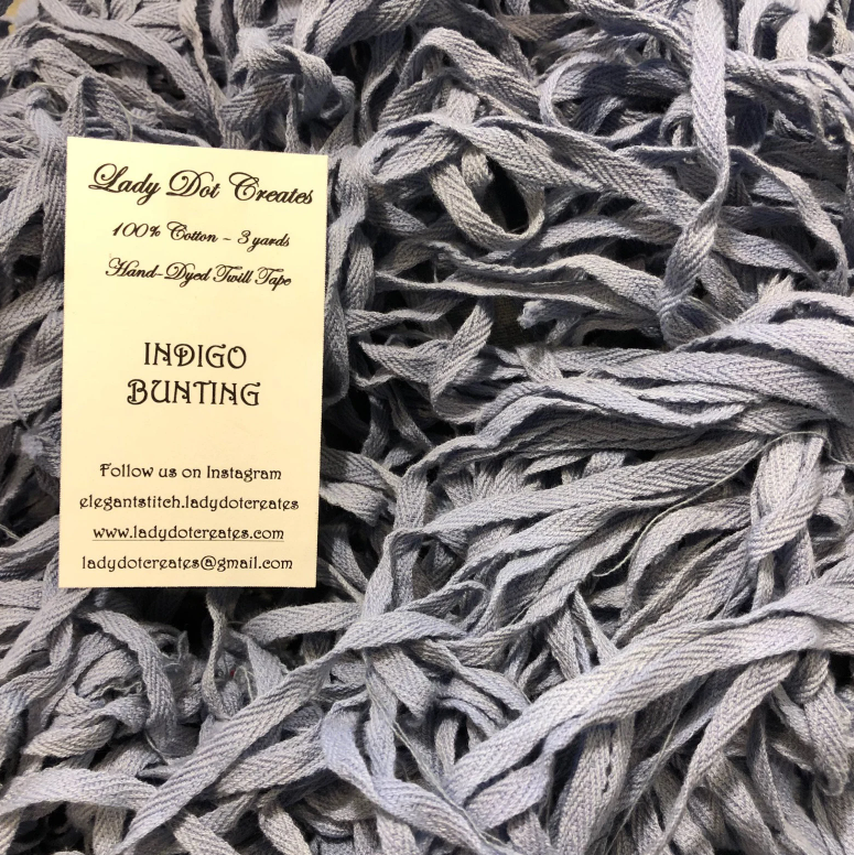 1/4" Wide Twill Tape - Indigo Bunting - Hand-dyed Cotton - Lady Dot Creates