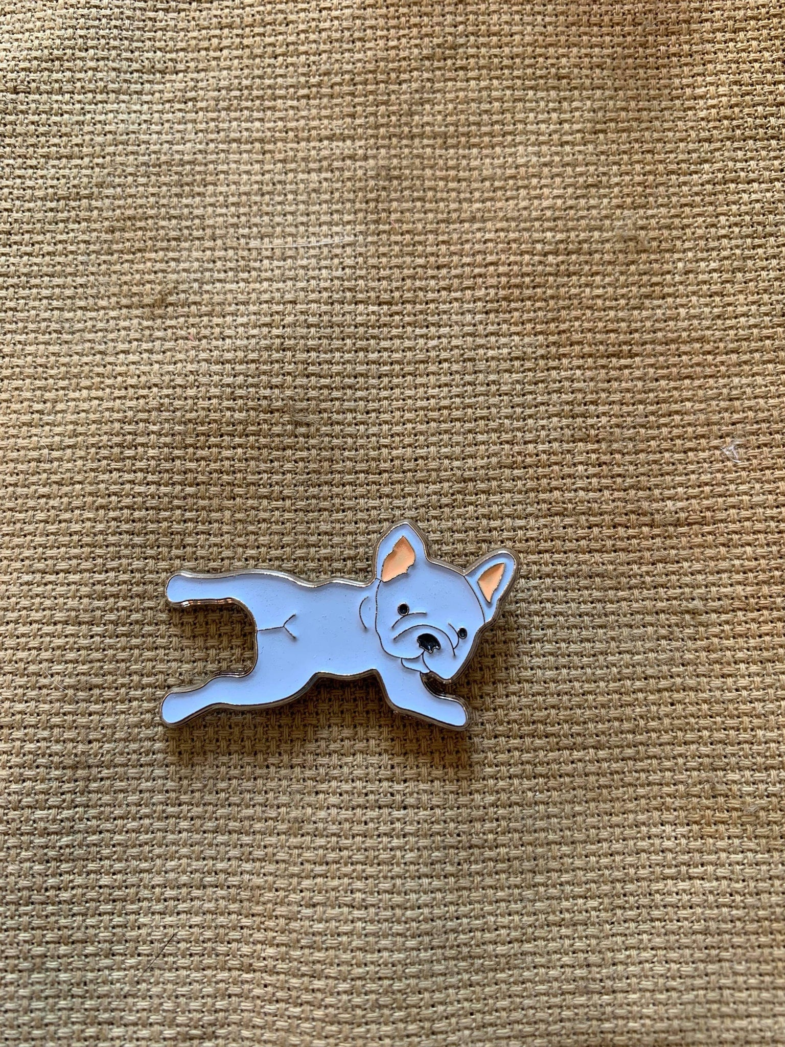 Albus the Frenchie enamel minder. Strong high quality magnet.