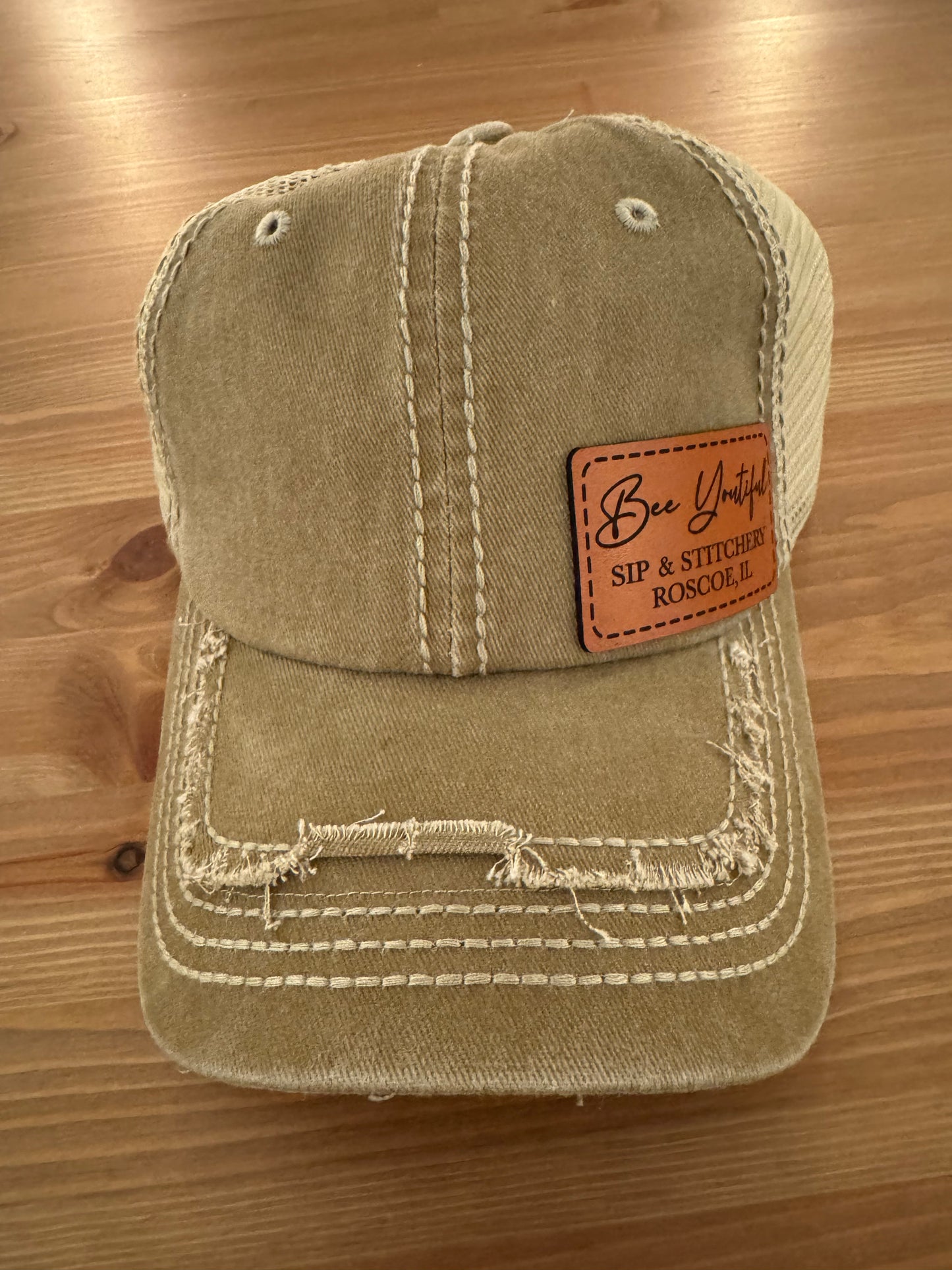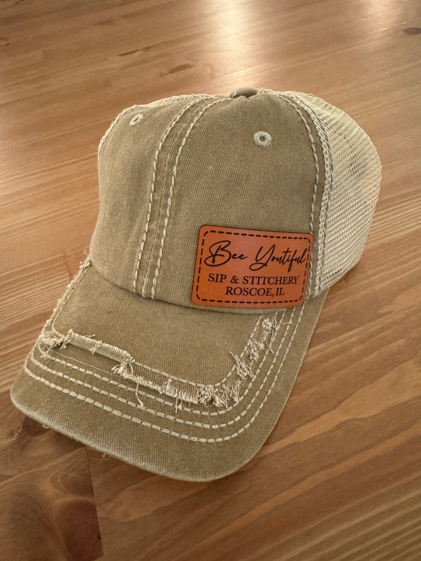 Bee Youtiful Sip and Stitchery Hat - Tan with Tan back
