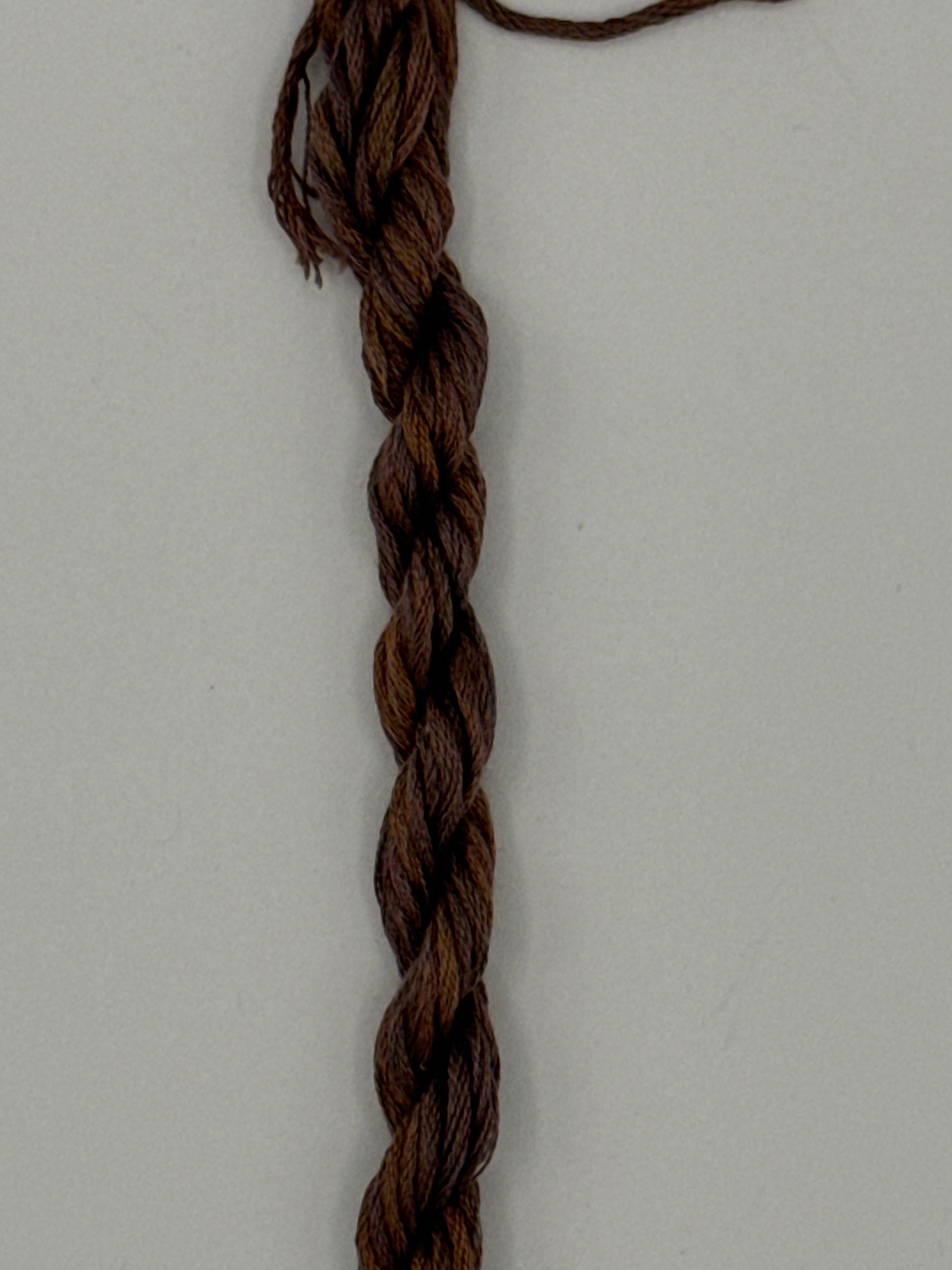 Hand-dyed 12 ply spun silk. 6 yard skein. Easily divided, it fits beautifully on many fabric and canvas sizes. Four plies work well on 18 count canvas, two plies cover 18 count fabric for cross stitch. Also use two plies for cross stitch over two threads on 28 count fabric. Good for surface embellishment on quilts.
