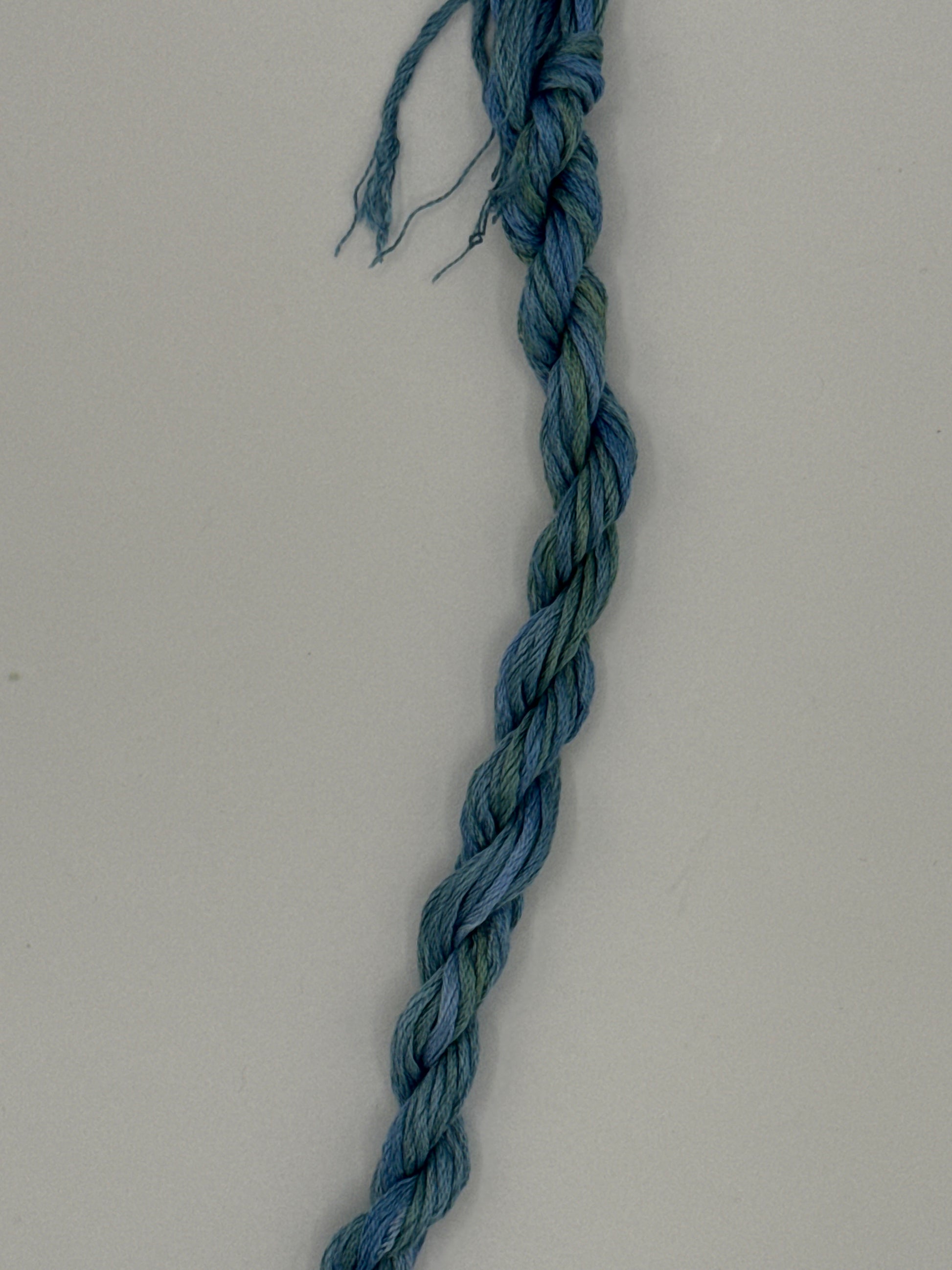 Hand-dyed 12 ply spun silk. 6 yard skein. Easily divided, it fits beautifully on many fabric and canvas sizes. Four plies work well on 18 count canvas, two plies cover 18 count fabric for cross stitch. Also use two plies for cross stitch over two threads on 28 count fabric. Good for surface embellishment on quilts.