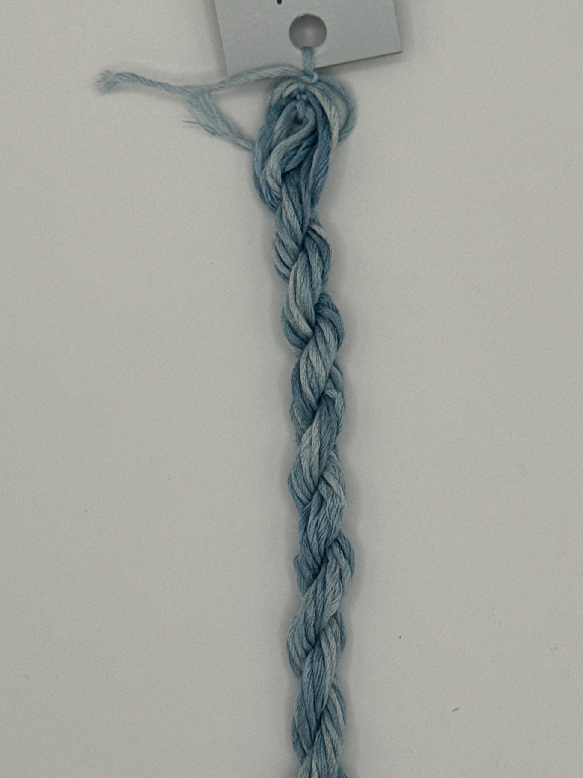Hand-dyed 12 ply spun silk. 6 yard skein. Easily divided, it fits beautifully on many fabric and canvas sizes. Four plies work well on 18 count canvas, two plies cover 18 count fabric for cross stitch. Also use two plies for cross stitch over two threads on 28 count fabric. Good for surface embellishment on quilts.