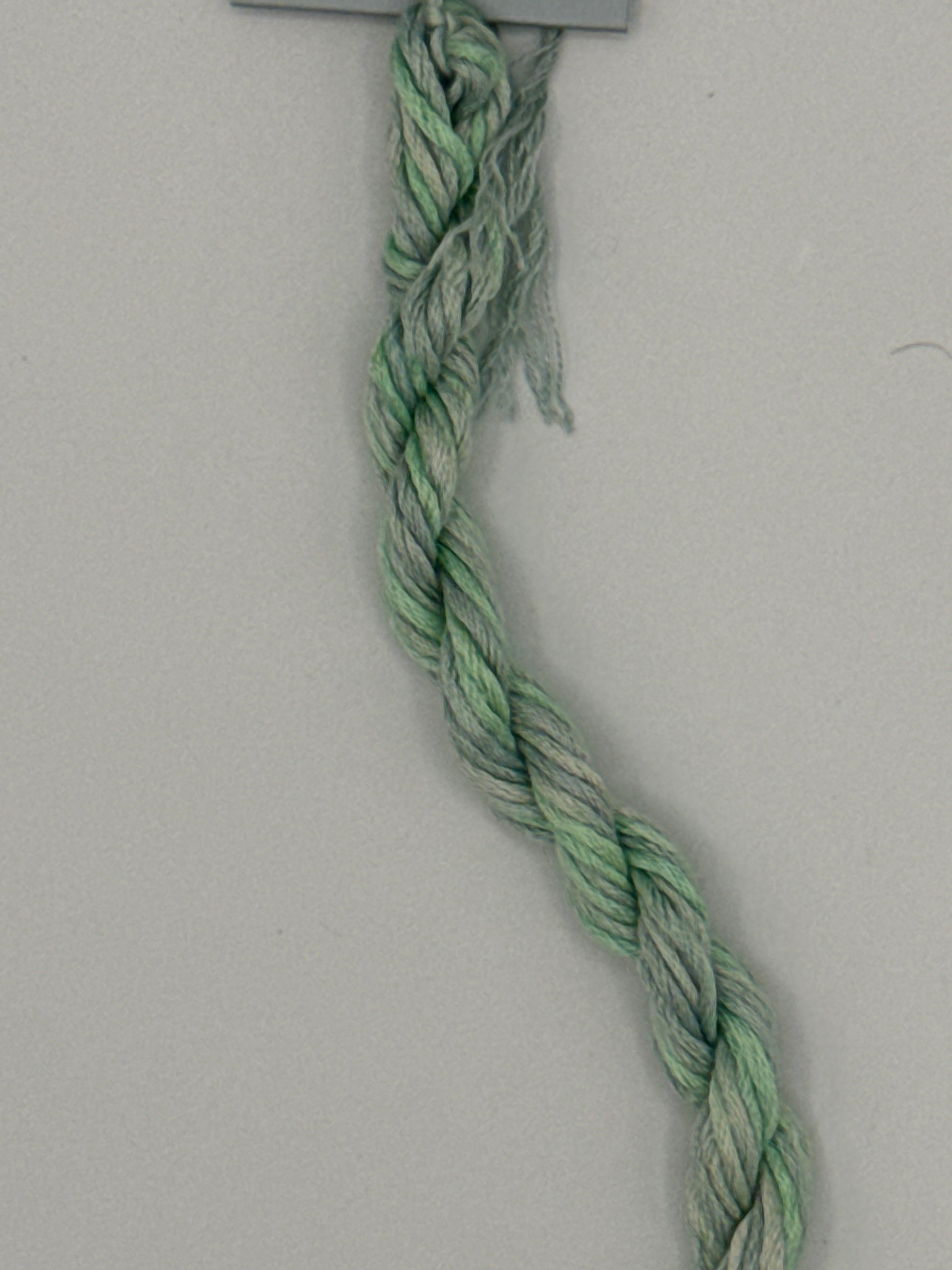 Hand-dyed 12 ply spun silk. 6 yard skein. Easily divided, it fits beautifully on many fabric and canvas sizes. Four plies work well on 18 count canvas, two plies cover 18 count fabric for cross stitch. Also use two plies for cross stitch over two threads on 28 count fabric. Good for surface embellishment on quilts.