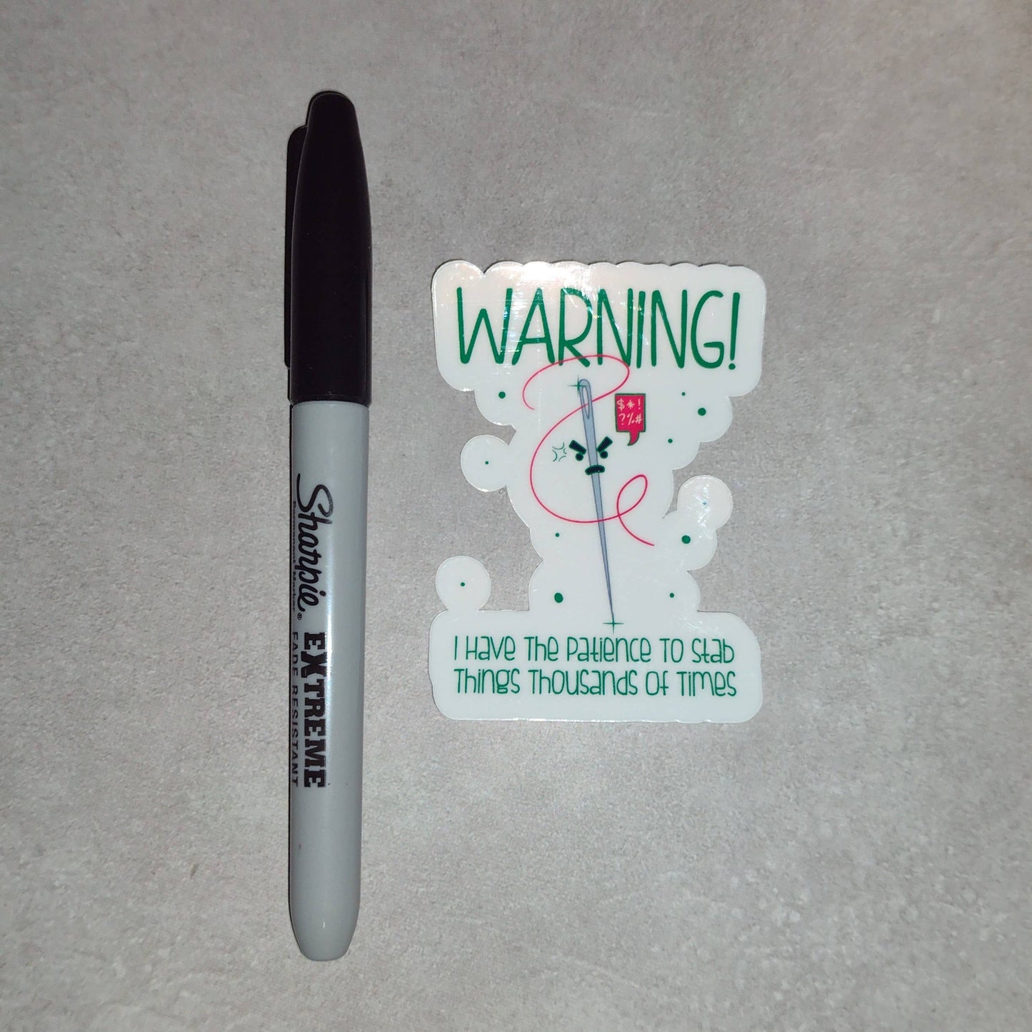 Cross Stitch Sticker - "Warning! I Have the Patience to Stab Things Thousands of Times"