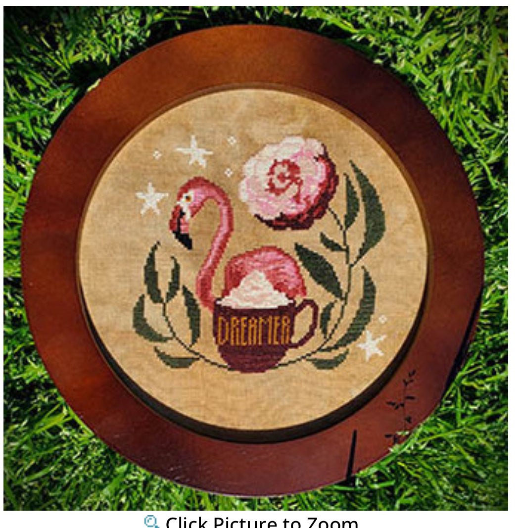 Pattern is stitched on 36 ct Old Gold from Fiber on a Whim using Classic Colorworks, Gentle Arts, DMC, and Weeks Dye Works threads. Stitch count is 99 x 90.