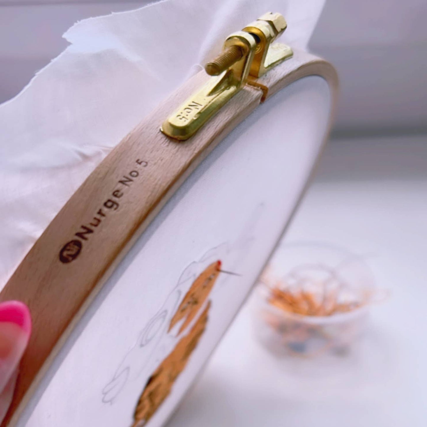 Nurge embroidery hoops are of superior quality and are made from hard beech wood. These are finely sanded and hand polished for a super-smooth natural wood finish. The adjustment screw and threaded angle bracket fittings are made from pure brass and polished for a rich, striking gold color look. This improves the presentation of your work.