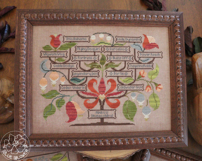 You may notice some interesting names on the family tree as well - since I don't like to put lots of personal details online without permission, I've included the heritage of one of our greyhounds! So "Legendary Lexi" and "Flying Daquiri" are featured in the models. The chart includes worksheets and alphabets (both over one and back stitched options) so you can include your own name choices.