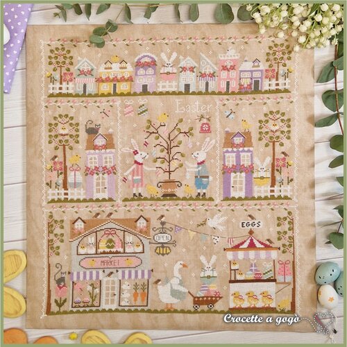 Cross stitch pattern from Crocette A Gogo featuring a city celebrating Easter!