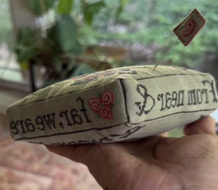 This sweet mattress is a perfect gift for a stitching friend. The verse reads, From near and far, we are stitched together. Finishing instructions are included.